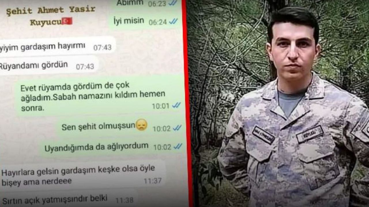 Kız kardeşinin rüyasında ağabeyinin şehit olduğunu görmesi üzerine attığı mesaja, şehidin "Hayırlara gelsin gardaşım, keşke olsa öyle ama nerde" yanıtını verdiği görüldü.