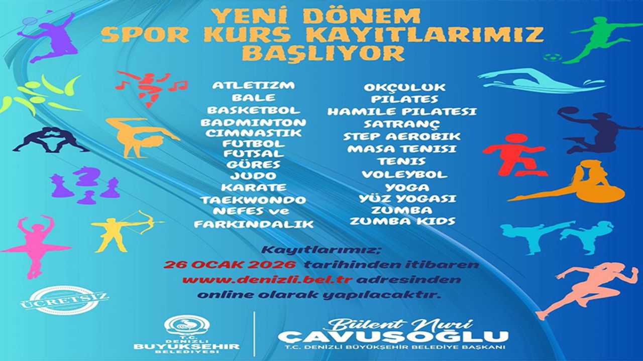 Şehrin spor altyapısını güçlendiren ve binlerce vatandaşa profesyonel eğitmenler eşliğinde spor yapma imkanı tanıyan Denizli Büyükşehir Belediyesi 2026 yılının ilk dönem kayıt tarihlerini açıkladı.