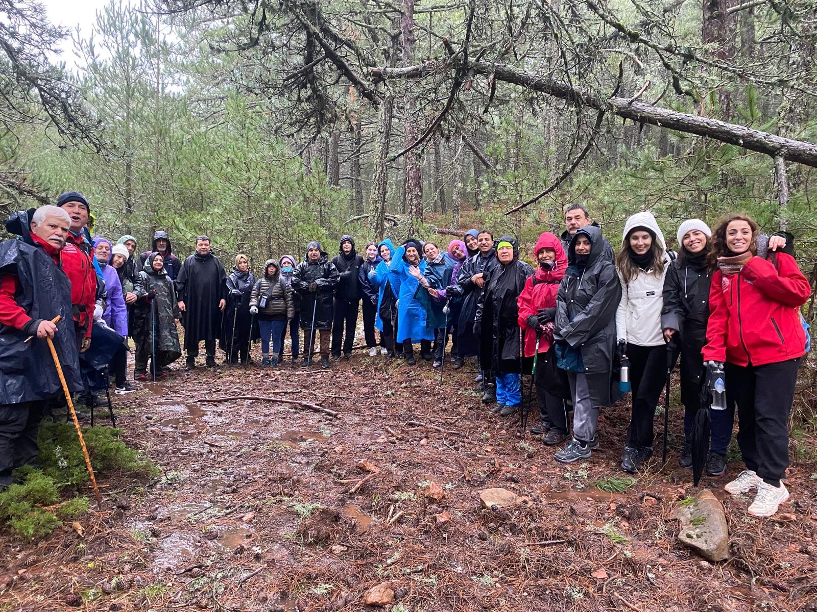 Yaz-Kış Yürüyüş Liderleri Orhan Mert ve Haydar Atilla'nın rehberliğinde, Bayram Ali Çelikten artçılığındaki yürüyüşte katılımcılara yağmurlu ve sisli hava eşlik etti.