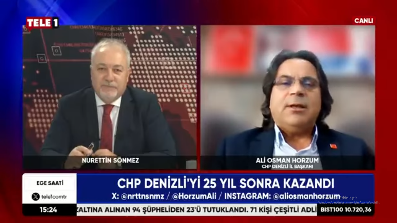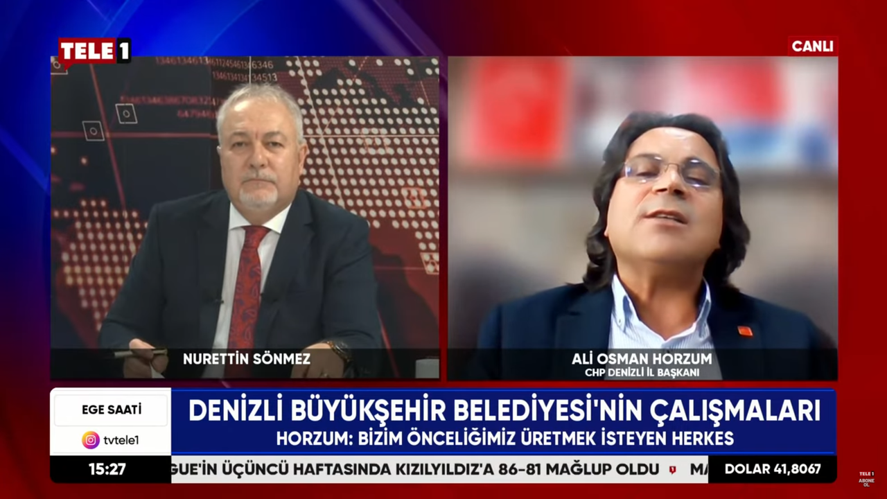 Ege Saati TV CHP Denizli İl Başkanı Ali Osman Horzum CHP Denizli İl Başkanı Ali Osman Horzum, Ege Saati'nde Tele1 TV'de Nurettin Sönmez'in konuğu oldu. 13.10.2025 - 10:18 13.10.2025 - 10:18