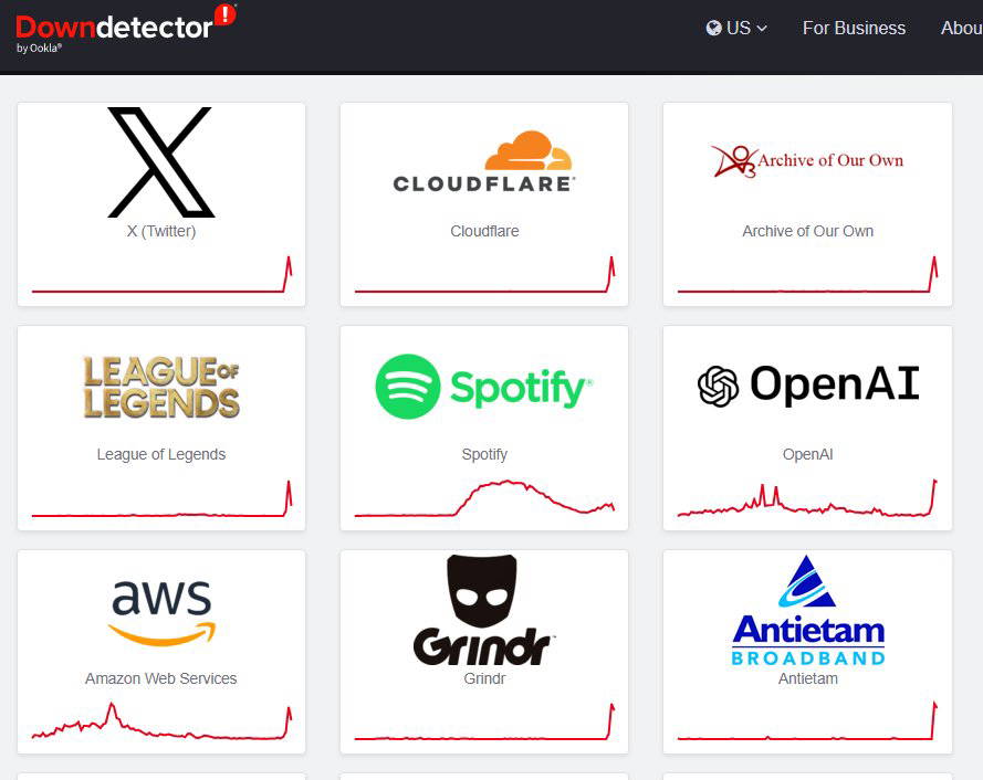 Kesintileri takip eden Downdetector'a göre Google, Facebook, X, OpenAI, Spotify ve Amazon Web Services gibi çok sayıda popüler internet servisi de sorundan etkilendi.