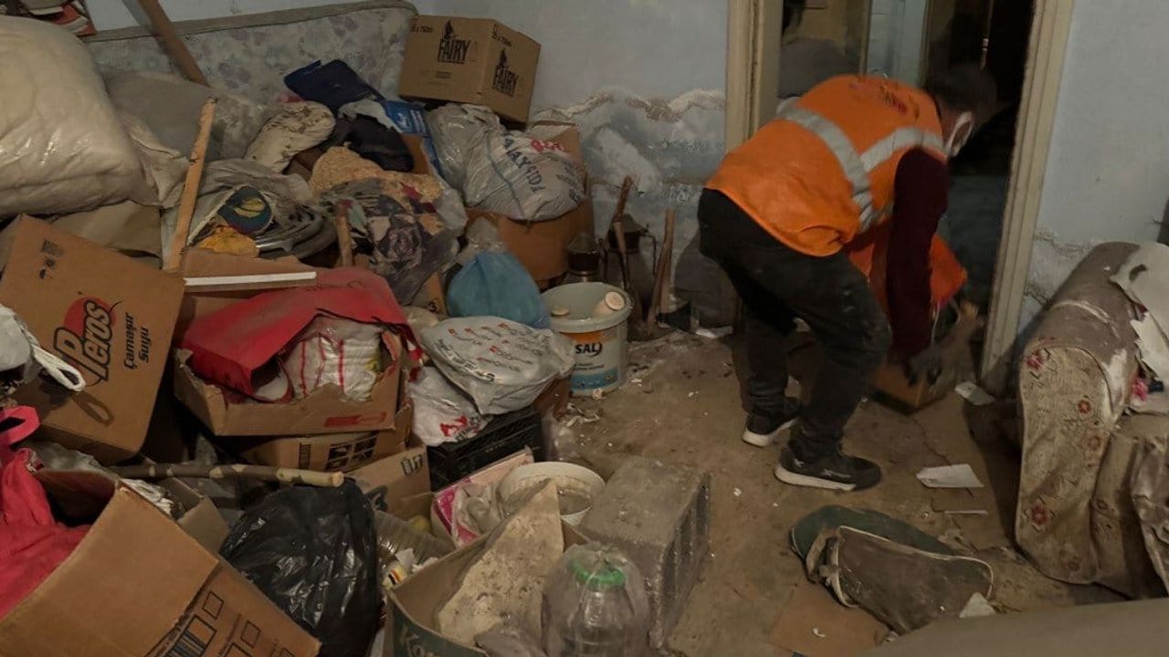 Olayın ardından belediye ekipleri, dairede biriken çöpleri boşaltmak için çalışma başlattı.